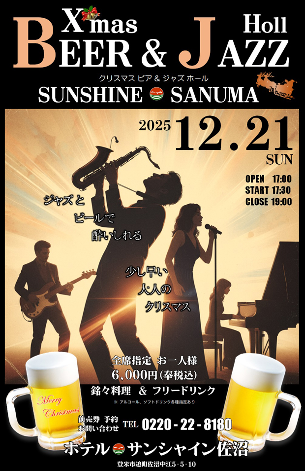 ホーム > お知らせ > クリスマスビア&ジャズホール 開催のお知らせ