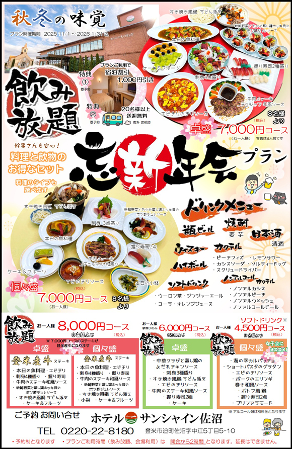 日頃よりホテルサンシャイン佐沼をご愛顧いただきまして誠にありがとうございます。